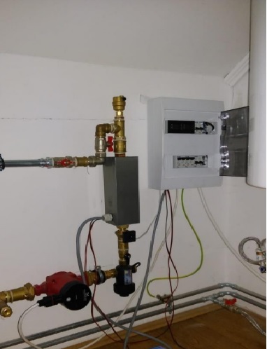 Verteilerkasten für Heizkessel, die installierte Heizleistung beträgt hier jedoch 2x12 kW.